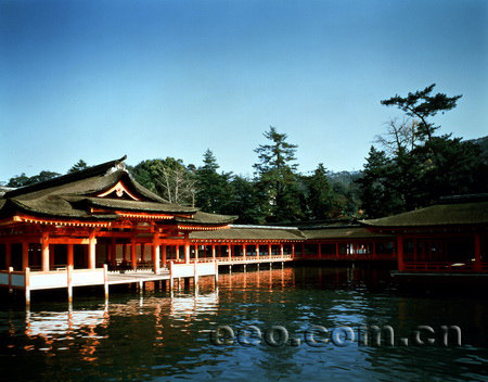 在日本,很久以来宫岛就被视为神岛而受到人们的敬仰。正是由于受到了这种信仰的不断熏陶,使得严岛神社的独特文化以及周围的自然环境得以完好的保存。耸立在海上的“大鸟居”(日本神社的大门),是宫岛的象征,它和有着红柱、白壁的神殿与周围的绿色森林、蓝色的大海相映生辉,1996 年被列为联合国教科文组织的世界文化遗产。