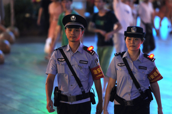 7月25日晚,重庆沙坪坝公安分局的警察和社区夜巡队员佩戴着警用肩灯整齐列队在三峡广场参加平安沙坪坝·社会面网格化巡逻启动仪式。民警们在广场上迈着整齐划一的步子,奔赴沙坪坝区的大街小巷开展巡逻工作,街面上随处可见的闪亮肩灯,形成了一道亮丽的风景线