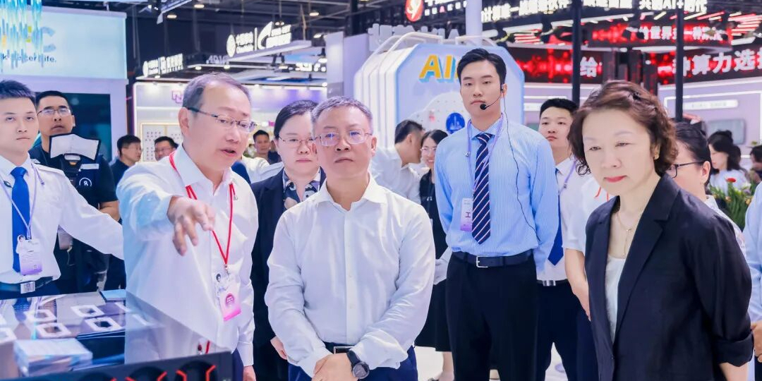 展会期间,中国移动总经理何颷、中国移动党组副书记王利民等领导莅临新华三展台参观,对新华三在“云-网-安-算-存-端”等领域的全栈能力,以及基于智算技术的行业应用实践成果,表示了高度肯定与赞赏。
