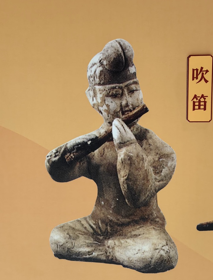 华清宫的梨园规模较小,居住人数在百人之多,与长安梨园的规模相比明显存在差距,因此能伴驾的乐人是众多梨园弟子中出类拔萃的佼佼者。在贵妃诞辰宴上表演的乐队是“小部音声”,是在梨园成立的后期所建立的。“小”既表示乐工年纪小,又指相比坐伎部三百人的规模可谓精简。表演队伍中有天宝年间梨园首席笛手李謩的外孙许云封,“树下彼何人,不语真吾好。语若及日中,烟霏谢成宝。”其名字是李白所取。许云封十岁时父母相继离世,成为孤儿的他来到长安,在几位舅舅的教导下学会吹笛,又因极具天赋被外公李謩举荐,成为梨园小部的一员。