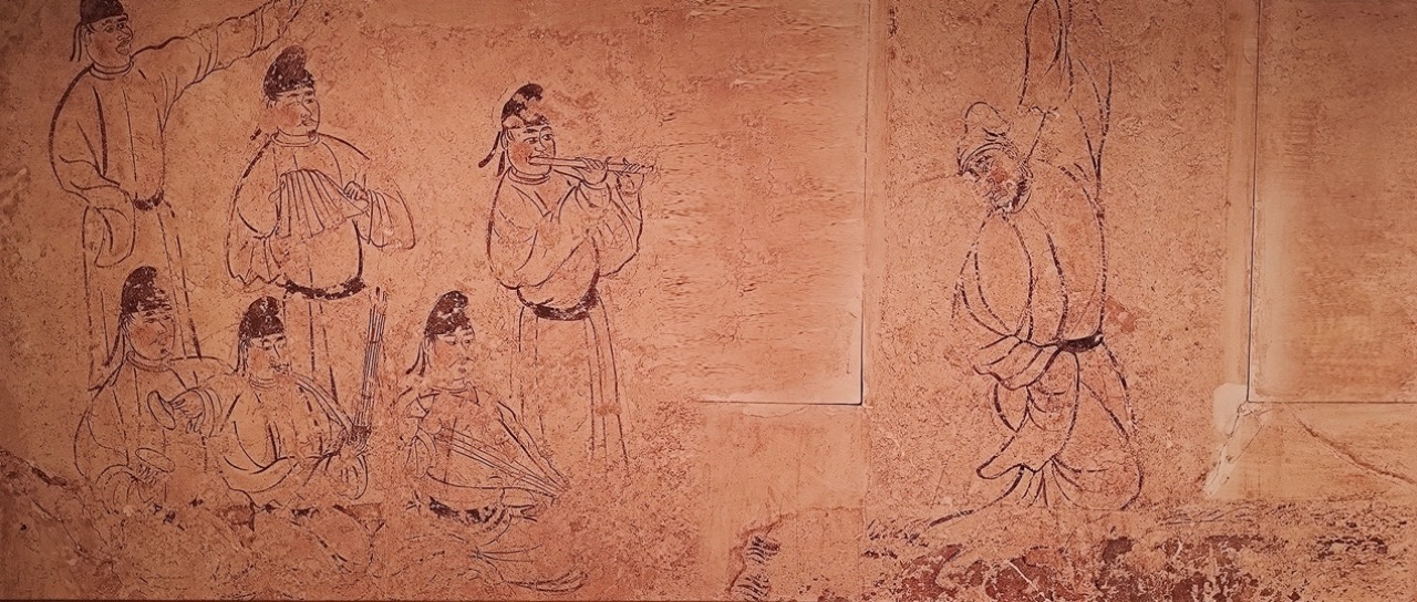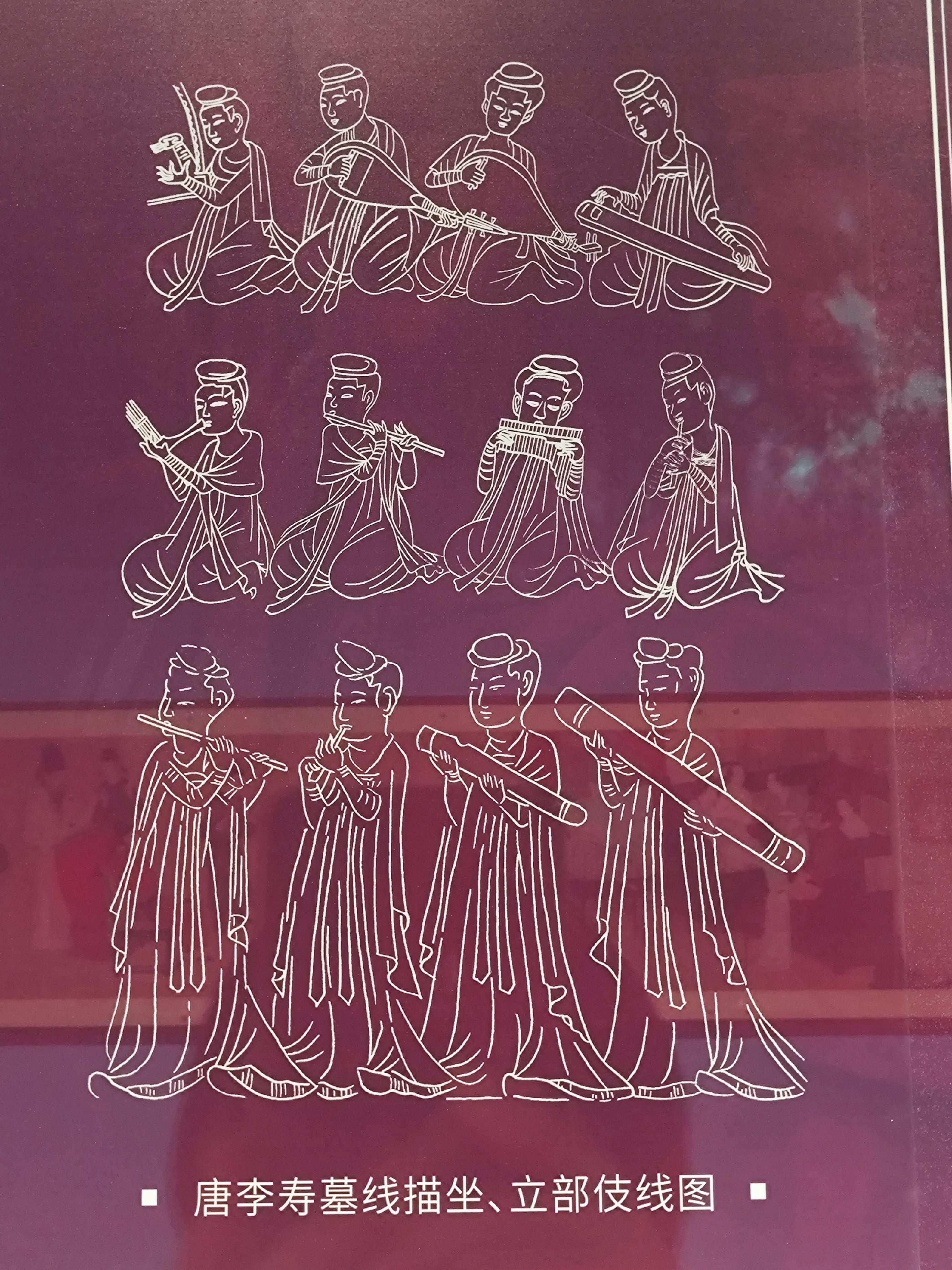 而这样一位对音乐如痴如醉的帝王对宫廷乐舞有更为严格的要求,开元二年(公元714年)玄宗提出“以太常礼乐之司,不应典倡优杂伎。”唐玄宗所说的太常即太常寺,是唐朝开国初期借鉴前代之法而设立的,专门管辖用于礼仪祭祀的雅乐和民间、宫廷举行宴会时所用的俗乐。太常寺下领导太乐署、鼓吹署等,盛唐时该机构下属人员多达数万人。该指令的提出使俗乐脱离太常寺的掌管,由新成立的左右教坊负责。唐玄宗又择选有天赋的宫女和技艺精湛的乐工,在梨园亲自教授他们乐曲,这些乐师被称作“皇帝梨园弟子”,梨园成为专门为玄宗服务的宫廷音乐机构,同时也是我国古代第一所皇家音乐艺术学院。