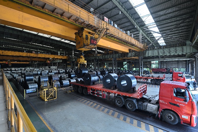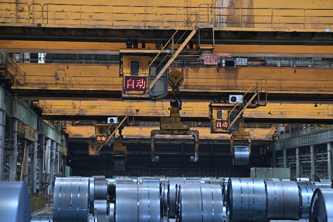 入库环节,系统能够依据各跨的实际库容、存储能力以及行车作业情况,在兼顾工序的前提下,进行普通钢卷和特殊钢卷的智能分流:分卷原料智能进平整跨区,缓冷钢卷智能入坑,缺陷钢卷智能标记化。单跨小时下卷能力平均在16卷,下卷能力完全满足轧线生产需求。