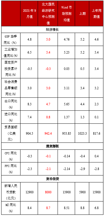 社会融资:2025年9月中国新增社会融资规模为35296亿元,较2024年9月的37635亿元同比减少2339亿元,降幅6.2%。这一增量虽高于8月的25693亿元,但同比少增反映出季末冲量效应有限,融资需求整体偏弱。尽管政府债券发行持续高位提供支撑,但信贷需求疲软和企业债券融资负增长加剧,凸显信用扩张放缓的特点,外部不确定性进一步施压。