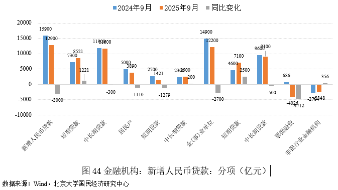 2025年9月中国金融机构新增人民币贷款为12900亿元,较2024年9月同比减少3000亿元,降幅18.9%. 这一变化主要受季末冲量效应推动,信贷投放加速,但居民贷款疲软和中长期贷款放缓导致同比少增,信用扩张力度不及预期。