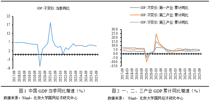 总体而言,受“依法依规治理企业低价无序竞争”影响,投资需求、工业生产均全面回调,2025年三季度GDP增速小幅回调,但高技术产业逆势上涨,叠加低基数效应,三季度GDP增速小幅下降,经济高质量发展。