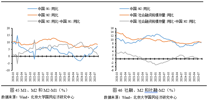 2025年9月末,M2与M1同比增速差从8月的2.8%收窄至9月的1.2%,表明企业资金从定期存款向活期存款的流动明显改善,流动性压力有所缓解。M1增速的较快回升显示企业短期资金周转需求增加,可能与制造业复苏和出口订单强劲有关。 然而,增速差仍处于较高水平,表明企业更倾向于持有低风险资产,固定资产投资等中长期支出意愿偏弱。 全球经济不确定性继续对企业信心形成压制。