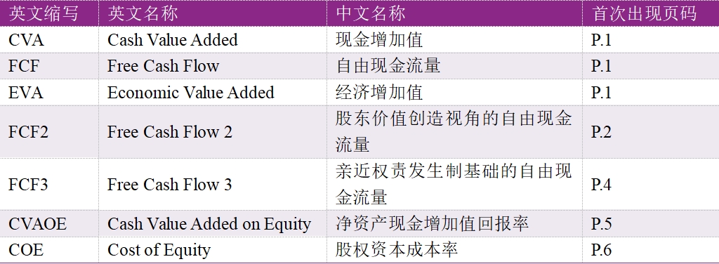 其中,现金增加值是采用股东价值创造视角的自由现金流量(FCF2)减去股权资本成本所得,因此: