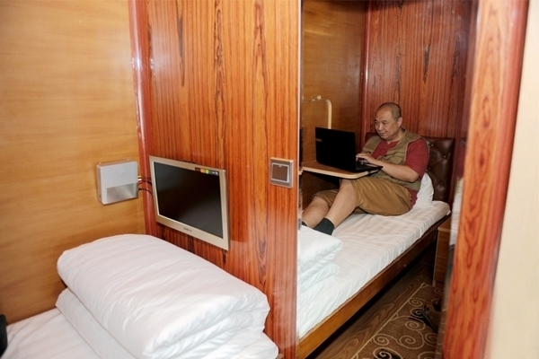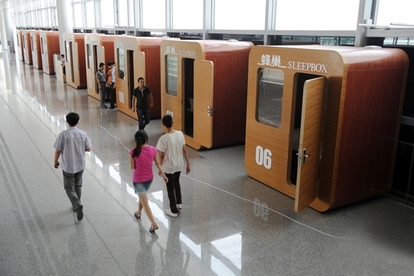 The mobile sleep boxes have a floor space of only three square meters and contain a single bed, a television, a computer desk, a power outlet and phone charging station, LED reading lights, electric blinds, wireless internet, a safe and other facilities.