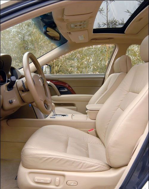 RL的内部采用了大面积的真皮面料,这不仅表现在座椅上,车门、仪表板、方向盘甚至换挡手柄都已被上等皮革所包裹,你完全可以认为这就是一种身份的象征。仪表板及前门把手处大面积使用了纯正樱桃木装饰,而空调、音响和导航控制按钮则被亚光金属装饰覆盖着,除了简洁、高雅的感官享受外,更是将古典美与现代美很好地进行融合,车内的尊贵气质就这样在不经意间形成了。