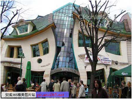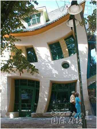 位于波兰索波特市, 是一家生意兴隆的购物中心的附属建筑,已成为当地著名旅游景点。它建于2004年,楼身呈扭曲的褶皱形,就像一栋喝醉酒后醉态可掬的卡通房子。这栋房子之所以会这样扭来扭去,主要是因为设计者参照了杰·马辛·赛瑟及皮尔·达赫尔博格这两名画家的画作,尽情发挥创意。房子的用色也是夸张而鲜明,夺目的蔚蓝、跳跃的鲜绿、暖暖的浅黄……五颜六色的玻璃及各种装饰都给人留下深刻印象。由于房子的外观如此俏皮奇特,索柏市市长杰克·简奴斯基于是将其命名为“扭曲的房子”。