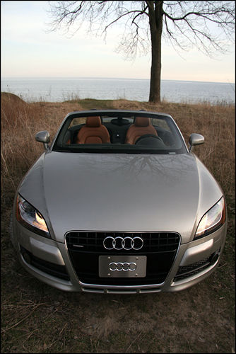 从它上市之日起,它就立即呈现出经典的特性,同时令人吃惊的是,将近十年之后,它一点都不过时。前移一代,它没有与奥迪家族类似的失误。如果新款TT不如早期车型的设计那么动人心魄,至少它也是一款漂亮的车。现在它是单向性的;它有着尖削的前脸,加上它成角的前灯就和蛇头差不多,宽宽的梯形格栅简洁的位于喇叭形缓冲装置之间。