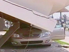 在智利首都圣地亚哥,汽车被压在因地震而垮塌的房屋下。