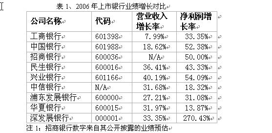 寻找最有价值的银行 —2006上市银行年报评价