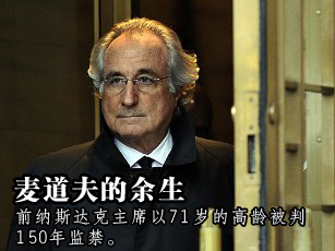 和美国历史上的其他著名金融诈骗案相比,麦道夫的刑罚也算是较严重的。2005年7月13日,当时被称为“美国历史上最大的公司欺诈案”的主角世界通信公司首席执行官贝纳德·埃伯斯被判入狱25年。2006年,著名的安然案件的主角,安然公司前首席执行官(CEO)杰弗里·斯基林因犯有欺诈、共谋、内部交易等一系列罪行被判处24年又4个月徒刑。
