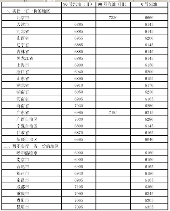 附图一:成品油供应价格调整表