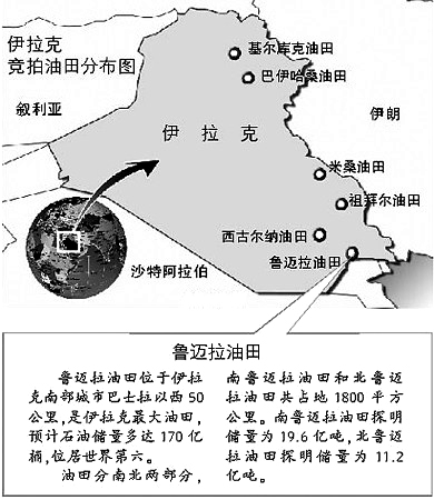 记者 严凯 6月30日,在伊拉克油气田合同招标中,中国石油天然气集团公司(简称“中石油”)与英国石油公司(简称:“BP”)联合竞得了位于伊拉克南部的鲁迈拉油田,并承诺在6年内将鲁迈拉油田的日产量从目前的110万桶提高到280万桶。