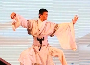 马云身上有太多的江湖侠气,而这不是在小说中,在阿里,马云不叫马云,叫风清扬。淘宝网总裁陆兆禧叫铁木真,支付宝总裁邵晓锋叫郭靖。阿里巴巴总部有个办公室叫“光明顶”,核心技术研究项目组名叫“达摩院”,马云的办公室里有两把张纪中送给他的剑。