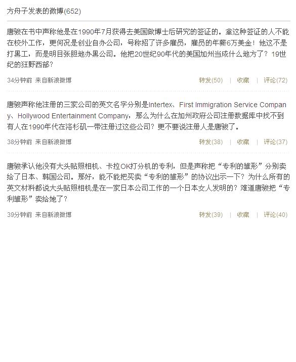 - 方舟子微博质疑唐骏留学经历造假 2010-07-05
