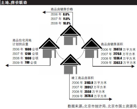 北京近年土地供应不足,商品住宅施工面积逐年下降,每年的成交面积