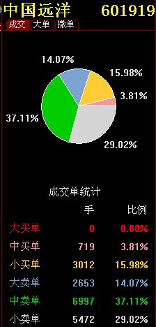 受远期运费巨亏影响,中国远洋12月16日股价大幅跳水。监测数据显示,中国远洋盘中出现2万手的单笔大卖单,表明资金出逃迹象明显。截止发稿报8.59元,跌7.24%。