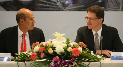 阿尔斯通董事长兼CEO柏珂龙(左)与阿尔斯通中国总裁濮利康(右)