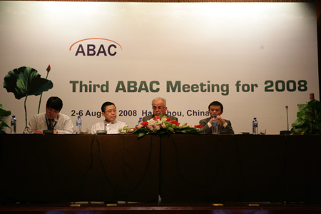 8月6日,APEC工商咨询理事会(ABAC)2008年度第三次会议在杭州闭幕。由泛太平洋地区最有代表性的工商界领袖组成的APEC工商咨询理事会企业家代表,在杭州共同发表了旨在释放中小企业活力,推动泛太平洋地区经济可持续发展的《ABAC中小企业发展宣言(杭州-利马宣言)》。