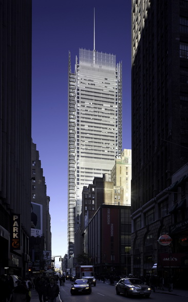 纽约时报公司拥有这栋52层高、150万平方英尺的坐落在第八大道的大楼58%的所有权。这栋楼由意大利建筑大师伦佐·皮亚诺设计,并在去年完工。建筑项目开发商“森林城市拉特纳公司”(Forest City Ratner)拥有对这栋大楼其余的所有权。 它的设计中包含了不少"绿色"特征:减少眩光;提供几乎整个白天工作时段的自然光照明;室内离幕墙1.5英尺远的地方沿水平方向设置了一层薄薄的陶瓷管以减少大楼制冷所消耗的能量。