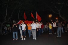 网络版专稿 驻川记者 盛超 20日晚上十点半左右,成都天府广场上有市民自发组织的游行纪念活动。据记者目测,参加人数在300以上。在现场有居民主动维持现场秩序,整个现场井然有序。