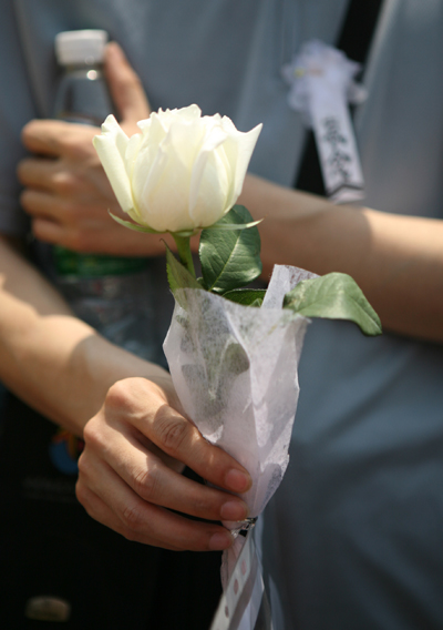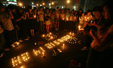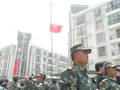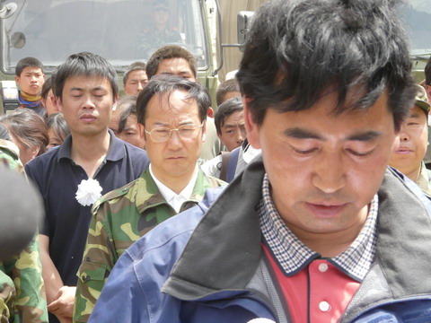 在哀悼现场一个悲伤的灾民 拍摄者杨光