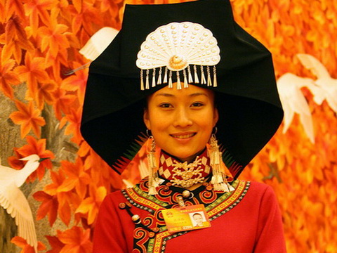 我又问张蓓蓓,你每天开会,脑袋上都顶着这么大的一个东西(她說她是白彝,穿的是彝族服饰)累不累?