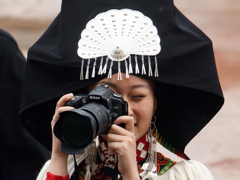 接下来的谈话,始终为旁人所扰,我也只好跟他们一样拿起相机,留下张蓓蓓这位彝族美女令人惊艳的容颜。